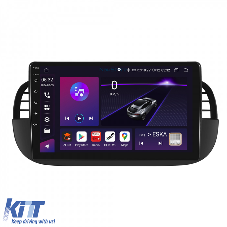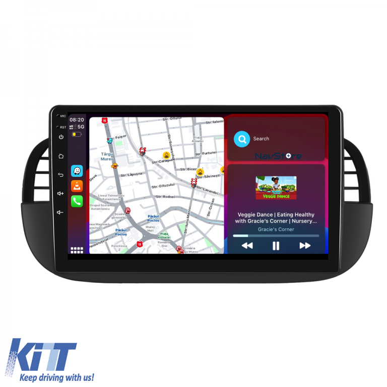 Specifications: Operating System: Android 12 Screen Size: 9 inch with touchscreen RAM: 4 GB Internal Memory: 64 GB Processor: Octa-Core 1.6GHZ Chip: 8581 Connectivity: USB (audio-video file playback) Wi-Fi (internet connection can be made via hotspot or SIM) Bluetooth (audio playback or calling function) Built-in microphone Wiring for connection to subwoofer and additional speakers. Resolution: 1280 720, 1080P HD video. Display: QLED Apple CarPlay and Android Auto Wireless Fan for more efficient cooling Functions: Takes commands from the steering wheel and car information. Takes parking sensors (displays sensors only if they are from OEM front-rear). USB output (audio and video playback) Audio output 4x50W RCA cables for subwoofer. Connect phone via bluetooth (audio playback from phone, phone calls, phonebook). Supports ADH reverse camera and DVR camera. Package contents: 1 x Car Navigation 1 x GPS Antenna 1 x RCA Cables + SIM Slot 1 x Camera RCA Cable 1 x USB Cable 1 x Canbus 1 x Power Connectors The navigation is suitable for the following car brands: Fiat: 500 (2007 - 2015).
