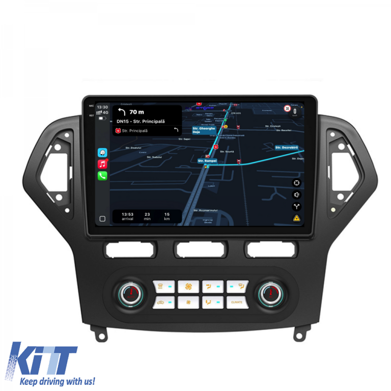 Operating system: Android 13 Processor: Octa-core 1.8Ghz RAM: 4GB Internal storage (ROM): 64GB Display size: 10 Inch Screen resolution: 1280x800p Bluetooth: Bluetooth for calls, phonebook download, and music playback WiFi: Yes (Integrated) 4G SIM slot: Yes Network connectivity: 4G, Phone hotspot, external router, 3G or 4G dongle, CarPlay Android Auto Microphone: Built-in microphone, with the ability to connect an external microphone Power supply: 12V Audio power: 4x45W DSP equalizer: Digital sound processor (DSP EQ) USB SD compatibility: Suitable for USB up to 128GB, SD support via USB adapter Android app compatibility: Suitable for most Android apps from Google Play CarPlay and Android Auto compatibility: Yes, suitable for iOS (CarPlay) and Android (Android Auto) Language support: Romanian, English, Hungarian, Spanish, Italian, German, etc. Screen type: Capacitive touchscreen, multi-touch, IPS Brightness settings: Yes RDS radio: Yes RCA subwoofer output: Yes RCA video output: Yes, via a USB adapter RCA audio output: Yes GPS: Yes, (Google Maps, Waze, HereWeGo) Parking sensors: Yes (Retrieve parking sensors with display where applicable) Steering wheel control: Yes (Retrieve steering wheel commands with canbus or analog where applicable) DVR camera compatibility: Yes Reverse camera compatibility: Yes User manual: Yes Package contents: Android navigation Adapter frame Power cable GPS antenna 4G antenna RCA connectors Wiring for reverse camera, 2 USB cables Canbus (only if applicable) Warranty certificate Fiscal invoice Navigation is suitable for the following car brands: FORD: Mondeo (2007-2014)