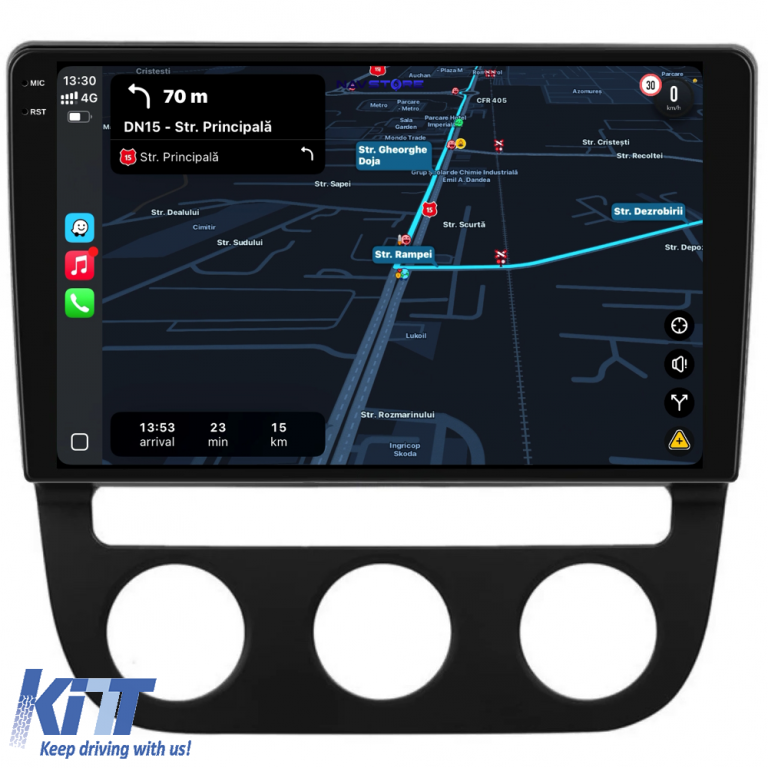 Operating system: Android 13 Processor: Octa-core 1.8Ghz RAM: 8GB Internal storage (ROM): 256GB Display size: 10 Inch Screen resolution: 1280x800p Bluetooth: Bluetooth for calls, downloading phonebook, and music playback WiFi: Yes (Integrated) 4G SIM slot: Yes Network connectivity: 4G, phone hotspot, external router, 3G or 4G dongle, CarPlay Android Auto Microphone: Built-in microphone, with the possibility to connect an external microphone Power supply: 12V Audio power: 4x45W DSP equalizer: Digital sound processor (DSP EQ) USB SD compatibility: Suitable for USB up to 128GB, SD support via USB adapter Android app compatibility: Suitable for most Android applications from Google Play CarPlay and Android Auto compatibility: Yes, suitable for iOS (CarPlay) and Android (Android Auto) Language support: Romanian, English, Hungarian, Spanish, Italian, German, etc. Screen type: Capacitive touchscreen, multi-touch, IPS Brightness settings: Yes RDS radio: Yes RCA subwoofer output: Yes RCA video output: Yes, with the help of a USB adapter RCA audio output: Yes GPS: Yes, (Google Maps, Waze, HereWeGo) Parking sensors: Yes (Park sensor integration with display where applicable) Steering wheel control: Yes (Steering wheel control integration with canbus or analog where applicable) DVR camera compatibility: Yes Rearview camera compatibility: Yes User manual: Yes Package content: Android navigation Adapter frame Power wiring GPS antenna 4G antenna RCA connectors Wiring for rearview camera, 2 USB cables Canbus (only if applicable) Warranty certificate Invoice The navigation is suitable for the following car brands: Volkswagen: Golf5 (2004-2009) Jetta (2004-2009)