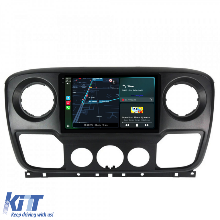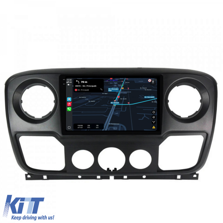 Operating system: Android 13 Processor: Octa-core 1.8Ghz RAM: 4GB Internal storage (ROM): 64GB Display Size: 10 Inch Screen resolution: 1280x800p Bluetooth: Bluetooth for calls, phonebook download and music playback WiFi: Yes (Built-in) 4G SIM Slot: Yes Network connectivity: 4G, phone hotspot, external router, 3G or 4G dongle, CarPlay Android Auto Microphone: Built-in microphone, with option to connect external microphone Power supply: 12V Audio power: 4x45W DSP Equalizer: Digital sound processor (DSP EQ) USB SD compatibility: Suitable for USB up to 128GB, SD support via USB adapter Android app compatibility: Suitable for most Android apps from Google Play CarPlay and Android Auto compatibility: Yes, suitable for iOS (CarPlay) and Android (Android Auto) Language support: Romanian, English, Hungarian, Spanish, Italian, German, etc. Screen type: Capacitive TouchScreen, multi-touch, IPS Brightness settings: Yes RDS Radio: Yes Subwoofer RCA output: Yes Video RCA output: Yes, with the help of a USB adapter Audio RCA output: Yes GPS: Yes, (Google Maps, Waze, HereWeGo) Parking sensors: Yes (Parking sensor takeover with display where applicable) Steering control: Yes (Steering wheel controls takeover with canbus or analog where applicable) DVR camera compatibility: Yes Reversing camera compatibility: Yes User manual: Yes Package contents: Android navigation Adapter frame Power wiring GPS antenna 4G antenna RCA connectors Wiring for reversing camera, 2 USB cables Canbus (only if applicable) Warranty certificate Fiscal invoice Navigation is suitable for the following car brands: Renault: Master (2010 - 2020) Nissan: NV400 (2010 - 2020) Opel: Movano (2010 - 2020)