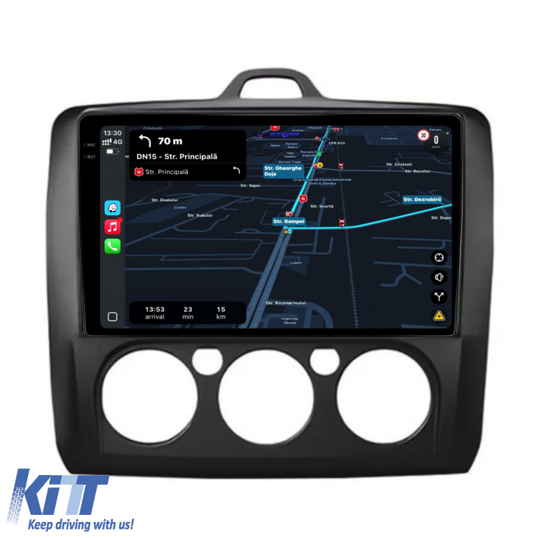 Operating System: Android 13 Processor: Quad-core 1.5Ghz RAM Memory: 4GB Internal Storage (ROM): 64GB Display Size: 9 Inch Screen Resolution: 1360x800p Bluetooth: Bluetooth for calls, downloading phonebook, and music playback WiFi: Yes (Integrated) 4G SIM Slot: No Network Connectivity: Phone hotspot, external router, 3G or 4G dongle, CarPlay Android Auto Microphone: Built-in microphone, with option for external microphone Power Supply: 12V Audio Power: 4x45W DSP Equalizer: Digital sound processor (DSP EQ) USB SD Compatibility: Suitable for USB up to 128GB, SD support via USB adapter Android Applications Compatibility: Suitable for most Android applications from Google Play CarPlay and Android Auto Compatibility: Yes, suitable for iOS (CarPlay) and Android (Android Auto) Language Support: Romanian, English, Hungarian, Spanish, Italian, German, etc. Screen Type: Capacitive TouchScreen, multi-touch, IPS Brightness Settings: Yes RDS Radio: Yes RCA Subwoofer Output: Yes RCA Video Output: Yes, with the help of a USB adapter RCA Audio Output: Yes GPS: Yes, (Google Maps, Waze, HereWeGo) Parking Sensors: Yes (Retrieve parking sensors display where applicable) Steering Wheel Control: Yes (Retrieve steering wheel commands with canbus or analog where applicable) DVR Camera Compatibility: Yes Reverse Camera Compatibility: Yes User Manual: Yes Package Contents: Android Navigation Adapter Frame Wiring Harness GPS Antenna RCA Connectors Wiring for reverse camera, 2 USB cables Canbus (only where applicable) Warranty Certificate Invoice Navigation is suitable for the following car brands: Ford: Focus (2004 - 2012)