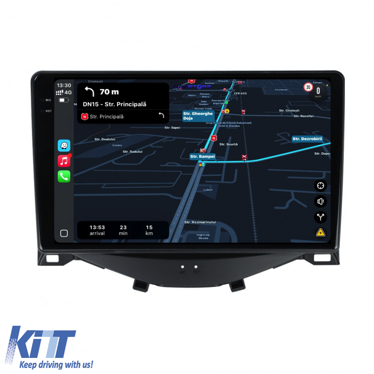 Operating system: Android 13 Processor: Quad-core 1.5Ghz RAM memory: 4GB Internal storage (ROM): 64GB Display size: 9 Inch Screen resolution: 1360x800p Bluetooth: Bluetooth for calls, downloading phonebook, and music playback WiFi: Yes (Integrated) 4G SIM Slot: No Network connectivity: Phone hotspot, external router, 3G or 4G dongle, CarPlay Android Auto Microphone: Built-in microphone, with the possibility of connecting an external microphone Power supply: 12V Audio power: 4x45W DSP equalizer: Digital sound processor (DSP EQ) USB SD compatibility: Suitable for USB up to 128GB, SD support via USB adapter Android app compatibility: Suitable for most Android apps from Google Play CarPlay and Android Auto compatibility: Yes, suitable for iOS (CarPlay) and Android (Android Auto) Language support: Romanian, English, Hungarian, Spanish, Italian, German, etc. Screen type: Capacitive touchscreen, multi-touch, IPS Brightness settings: Yes RDS radio: Yes RCA subwoofer output: Yes RCA video output: Yes, with the help of a USB adapter RCA audio output: Yes GPS: Yes (Google Maps, Waze, HereWeGo) Parking sensors: Yes (Retrieve parking sensor display where applicable) Steering wheel control: Yes (Retrieve steering wheel controls with canbus or analog where applicable) DVR camera compatibility: Yes Reverse camera compatibility: Yes User manual: Yes Package contents: Android navigation Adapter frame Power cable GPS antenna RCA connectors Wiring for reverse camera, 2 USB cables Canbus (only if applicable) Warranty certificate Fiscal invoice Navigation is suitable for the following car brands: Peugeot: 108 (2014 - 2022) Citroen: C1 (2014 - 2022) Toyota: Aygo (2014 - 2022)
