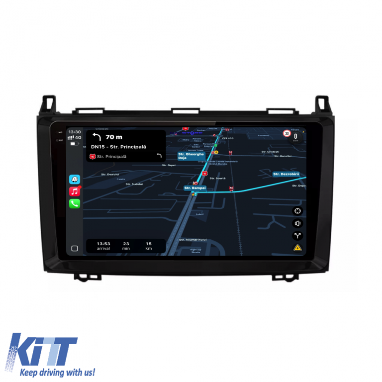 Operating System: Android 13 Processor: Octa-core 1.6Ghz RAM: 6GB Internal Storage (ROM): 128GB Display Size: 9 Inch Screen Resolution: 1360x800p Bluetooth: Bluetooth for calls, phone book download, and music playback WiFi: Yes (Integrated) 4G SIM Slot: Yes Network Connectivity: 4G, phone hotspot, external router, 3G or 4G dongle, CarPlay Android Auto Microphone: Integrated microphone, with the option to connect an external microphone Power Supply: 12V Audio Power: 4x45W DSP Equalizer: Digital sound processor (DSP EQ) USB SD Compatibility: Suitable for USB up to 128GB, SD support via USB adapter Android App Compatibility: Suitable for most Android apps from Google Play CarPlay and Android Auto Compatibility: Yes, suitable for iOS (CarPlay) and Android (Android Auto) Language Support: Romanian, English, Hungarian, Spanish, Italian, German, etc. Screen Type: Capacitive TouchScreen, multi-touch, IPS Brightness Settings: Yes RDS Radio: Yes RCA Subwoofer Output: Yes RCA Video Output: Yes, using a USB adapter RCA Audio Output: Yes GPS: Yes, (Google Maps, Waze, HereWeGo) Parking Sensors: Yes (Pickup parking sensors with display where applicable) Steering Wheel Control: Yes (Pickup steering wheel controls with canbus or analog where applicable) DVR Camera Compatibility: Yes Rearview Camera Compatibility: Yes User Manual: Yes Package Contents: Android Navigation Adapter frame Power wiring GPS antenna 4G antenna RCA connectors Wiring for rearview camera, 2 USB cables Canbus (only if applicable) Warranty certificate Fiscal invoice Navigation is suitable for the following car brands: Mercedes Benz: Sprinter (2006-2012) A-Class (2004 - 2012) B-Class (2005 - 2011) Viano (2006-2012) Vito W639 (2006-2012)