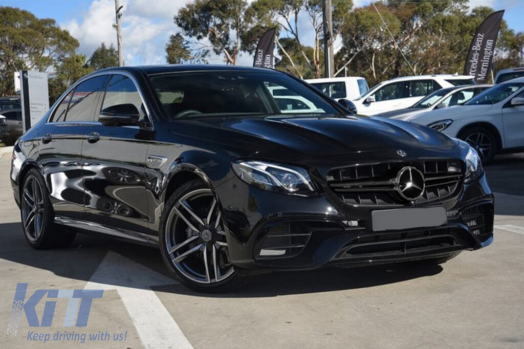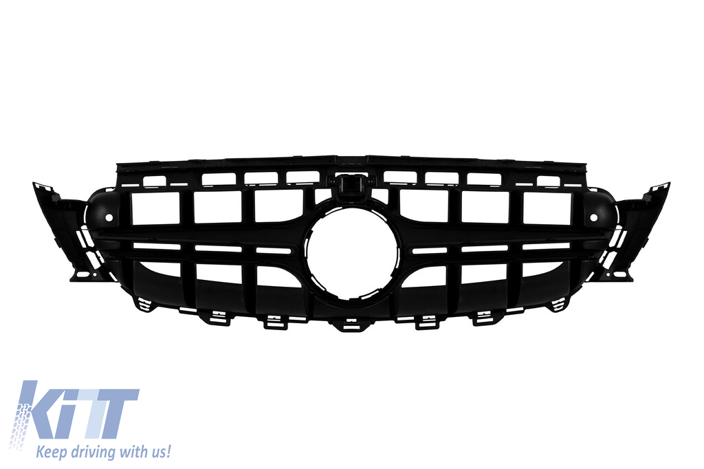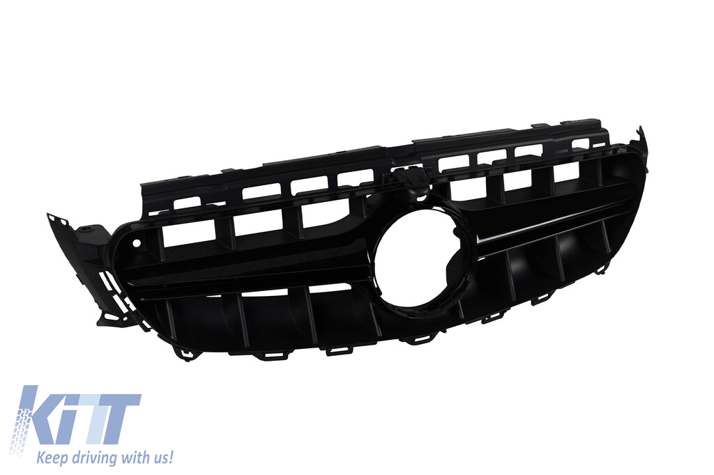 Black lacquer grille type E63 A Design suitable for Mercedes E-Class W213 sedan, S213 estate, C238 coupe, A238 convertible 2016-2019 with opening for camera
