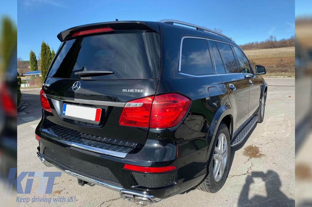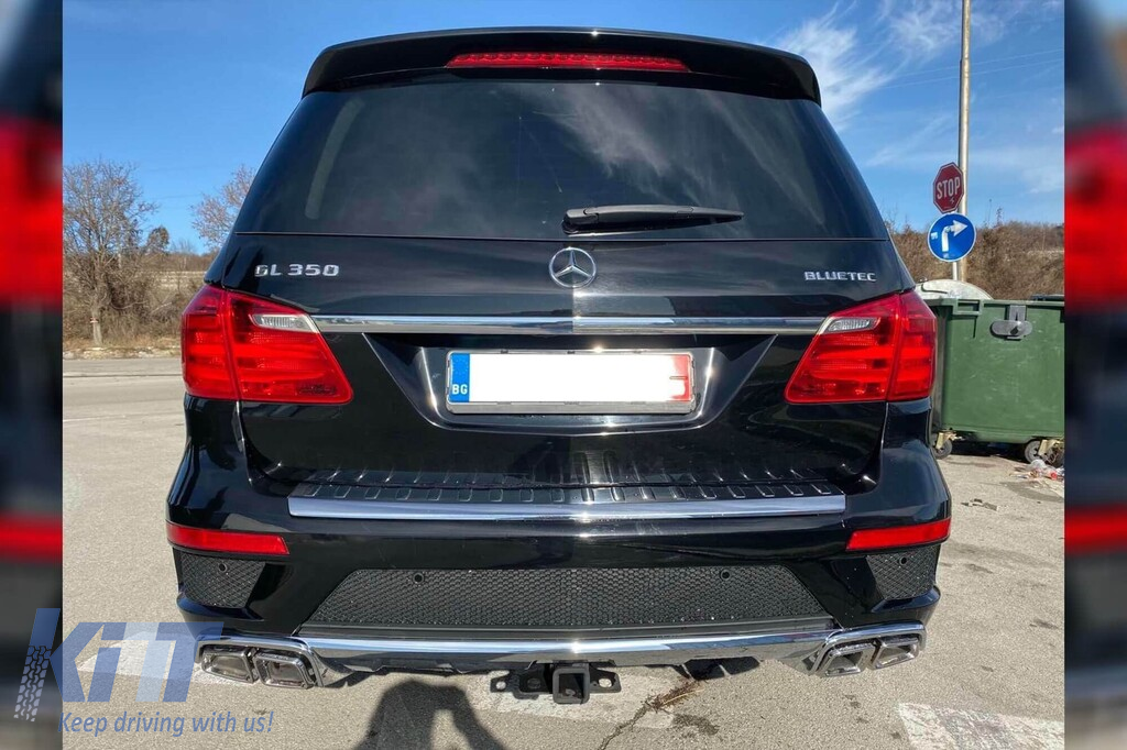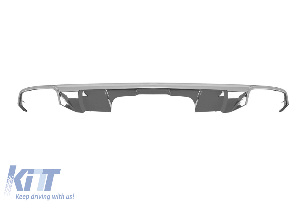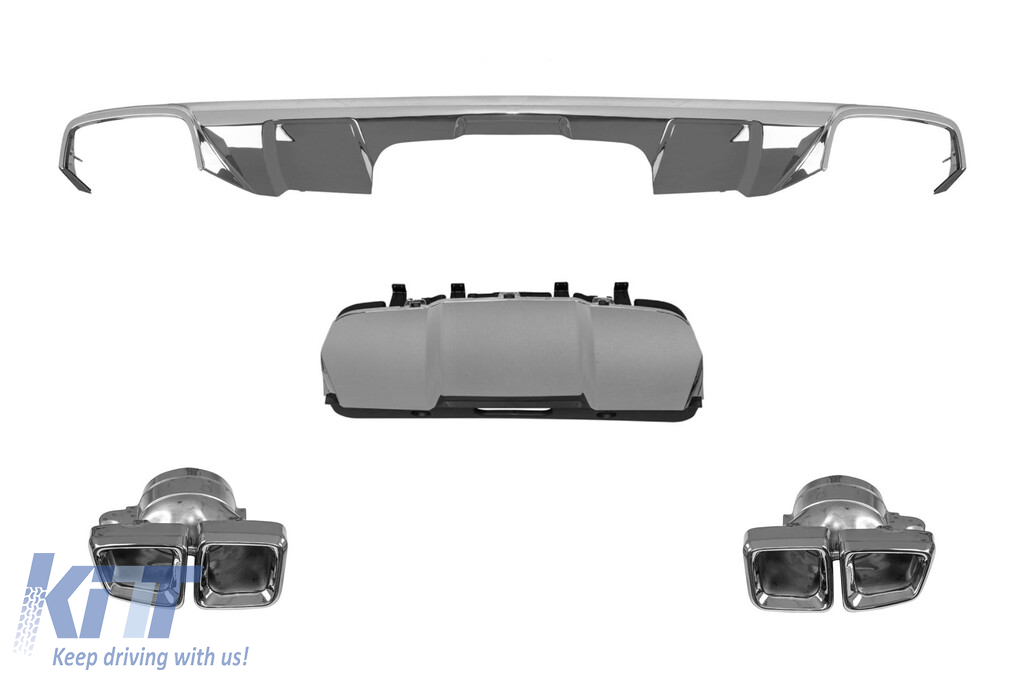 Chrome exhaust tips diffuser suitable for rear A Design bumper for Mercedes GL X166 2012-2015 with two dual exhaust openings, made from high-quality ABS plastic. The diffuser fits perfectly. It gives a unique and different look to the vehicle. The tuning diffuser features a dual opening on both the left and right sides. This opening is suitable for a single exhaust tip, as shown in the graphic. It can also accommodate a single oval-shaped exhaust tip. This model of diffuser is designed for a tuning bumper. This is due to the specific shape of the tuning compared to the standard bumper installed by the vehicle manufacturer. The diffuser is made from elastic, impact-resistant, high-quality ABS plastic. Every corner and opening of the diffuser is carefully processed to avoid unpleasant sharp edges, thus achieving the perfect element for a 100% fit. Compatibility with: Not compatible with: Technical Info: • Weight: 5.00 • Producer: AB • EAN: 0000134002 • Color: Chrome • Type of diffuser: For tuning bumper • Type of exhaust vents: -oo-oo-, -oo-oo-