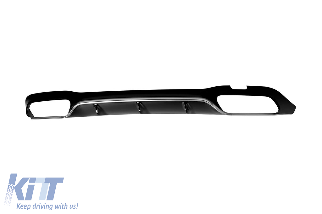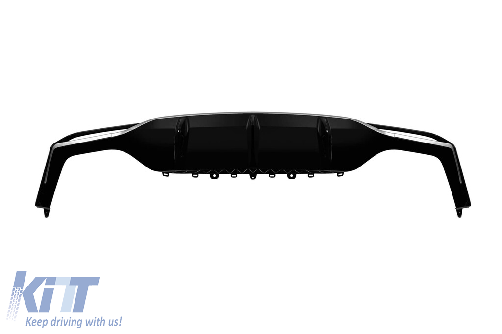 Rear diffuser suitable for tuning bumper, with dual openings for dual exhaust, made from high-quality ABS plastic. The diffuser fits perfectly. It gives a unique and different look to the vehicle. TUNING DIFFUSER IS NOT SUITABLE FOR MODELS EQUIPPED WITH TOW BAR! The tuning diffuser features dual openings on the left and right sides. These openings are suitable for a dual exhaust tip, as indicated in the graphic. A single oval exhaust tip can also be installed. This model of diffuser is designed for tuning bumpers. This is due to the specific shape of the tuning bumper compared to the standard bumper installed by the vehicle manufacturer. The diffuser is made from elastic, impact-resistant, high-quality ABS plastic. Every corner and opening of the diffuser is carefully processed to avoid unpleasant sharp edges, achieving a perfect fit element of 100%. Technical Info: • Weight: 3.00 • Producer: AB • EAN: 1000008599 • Color: Black lacquer • Type of diffuser: For tuning bumper • Type of exhaust vents: -oo-oo-, -oo-oo-