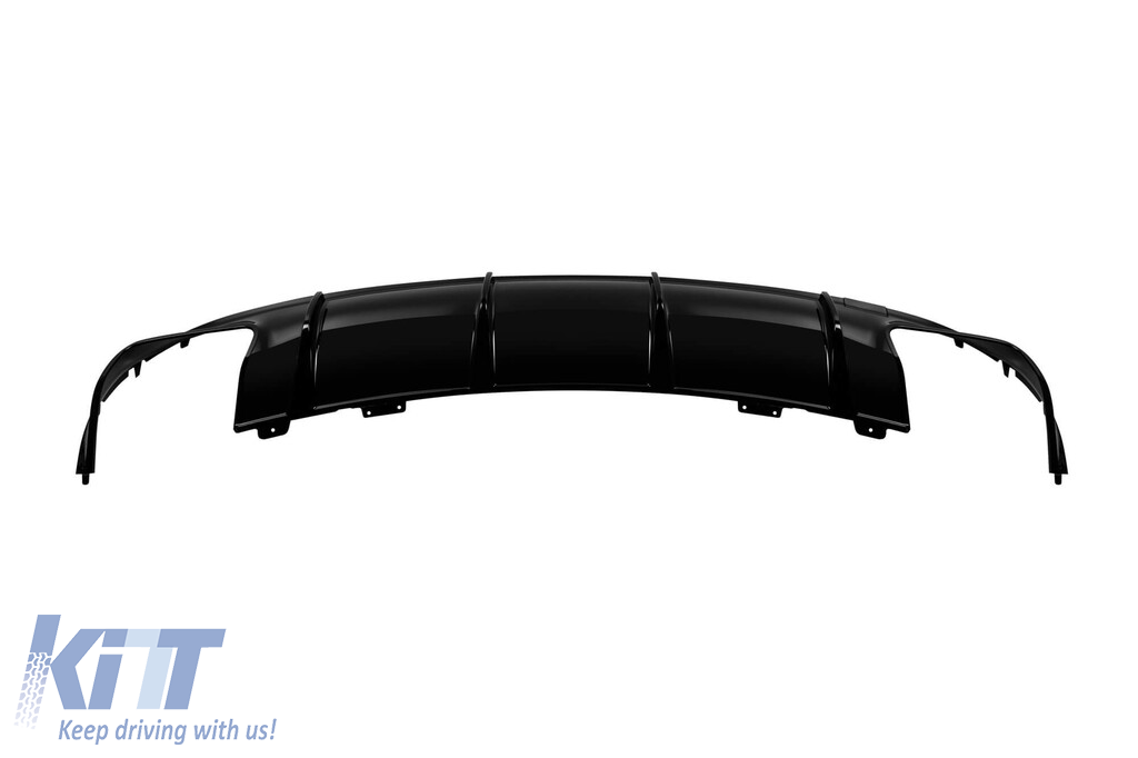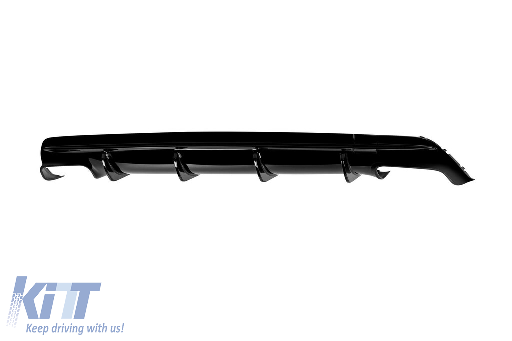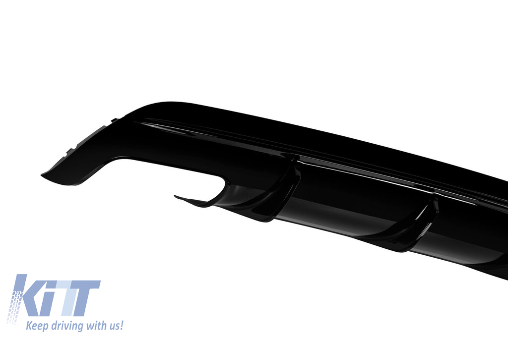 Rear diffuser suitable for tuning bumper, with dual openings for dual exhaust, made from high-quality ABS plastic. The diffuser fits perfectly. It gives a unique and different look to the vehicle. TUNING DIFFUSER IS NOT SUITABLE FOR MODELS EQUIPPED WITH TOWBAR! The tuning diffuser features dual openings on the left and right sides. These openings are suitable for a dual exhaust tip, as shown in the graphic. A single oval exhaust tip can also be installed. This model of diffuser is designed for tuning bumpers. This is due to the specific shape of the tuning bumper compared to the standard bumper installed by the vehicle manufacturer. The diffuser is made from elastic, impact-resistant, high-quality ABS plastic. Every corner and opening of the diffuser is carefully processed to avoid unpleasant sharp edges, achieving a perfect fit element of 100%. Technical Info: • Weight: 5.00 • Producer: AB • EAN: 1000013361 • Color: Black lacquer • Type of diffuser: For tuning bumper • Type of exhaust vents: -oo-oo-, -oo-oo-