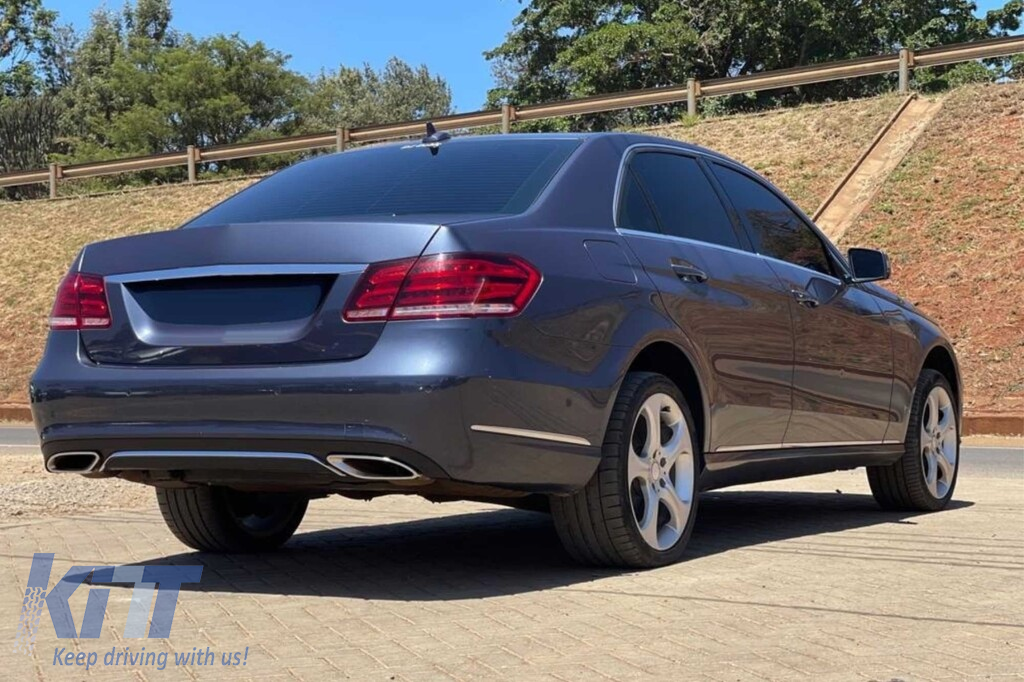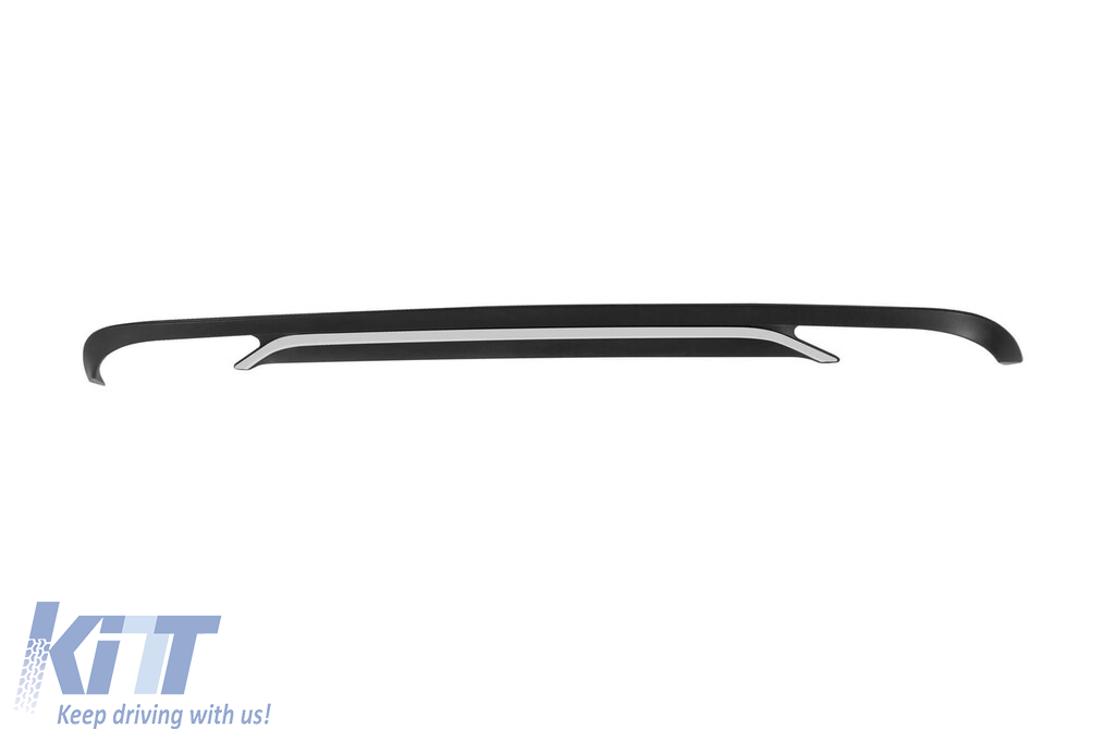 E300 type diffuser suitable for standard rear bumper of Mercedes E-Class W212 with two openings for dual exhaust, made from high-quality ABS plastic. The diffuser fits perfectly. It gives a unique and different look to the vehicle. The tuning diffuser features dual openings on the left and right sides. The openings are suitable for a dual exhaust tip, as shown in the graphic. *The tips are attached to the diffuser using fasteners. This model of diffuser is designed for a standard bumper. This is due to the specific shape of the standard bumper installed by the vehicle manufacturer. The diffuser is made from elastic, impact-resistant, high-quality ABS plastic. Every corner and opening of the diffuser is carefully processed to avoid unpleasant sharp edges, thus achieving the perfect element for a 100% fit.