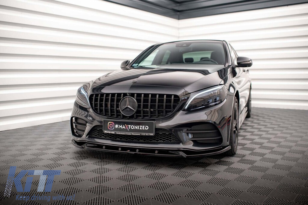 Maxton Design version 2 spoiler suitable for front bumper of Mercedes C-Class C43 A Design W205, C205, A Design-Line W205, C205 2018-2021, black lacquer
