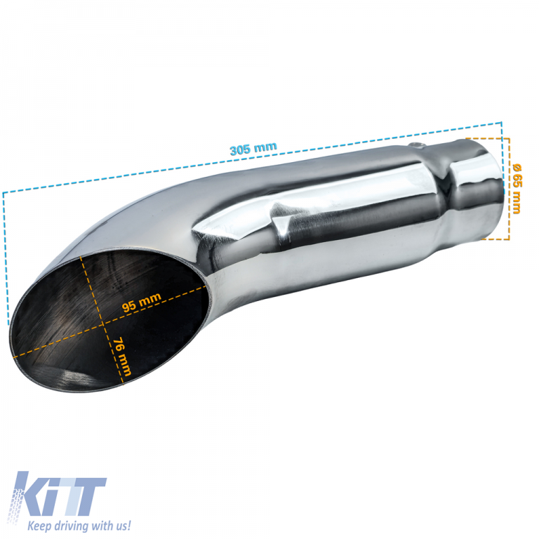 Enhance the appearance of your vehicle with this long, curved exhaust tip made of stainless steel. The classic "turndown" design directs exhaust gases downward and provides an elegant rear view.