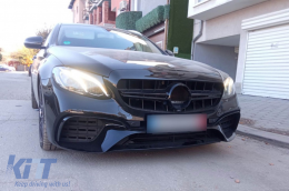 Front A Design bumper type E63, produced for the gentlemen of the E-Class from series W213 by the German automotive giant Mercedes. This is not just another tuning bumper that merely clutters the already well-formed design of your Mercedes. Elegantly clean, with aggressive lines highlighting the essence of every sports car. The bumper is made from elastic, impact-resistant, high-quality ABS plastic. Every corner and opening of the bumper has been carefully processed to avoid unpleasant sharp edges, thus achieving the perfect element for a 100% fit. The bumper features precisely cut and arranged openings for the parking sensor system of your vehicle. This minimizes additional interventions from mechanics. Emblems suitable for this model grille: