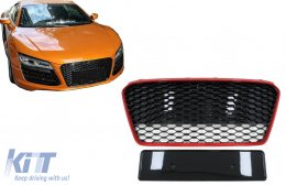 Front Grille suitable for Audi R8 42 1st Generation Facelift (2013-2015) RS Design Glossy Black Red