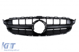 Central Grille suitable for Mercedes C-Class W205 S205 C205 (2014-2018) GT-R Panamericana Design Black With 360 Camera